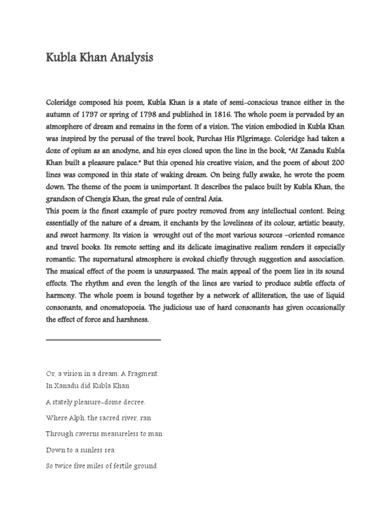 Kubla Khan Analysis PDF